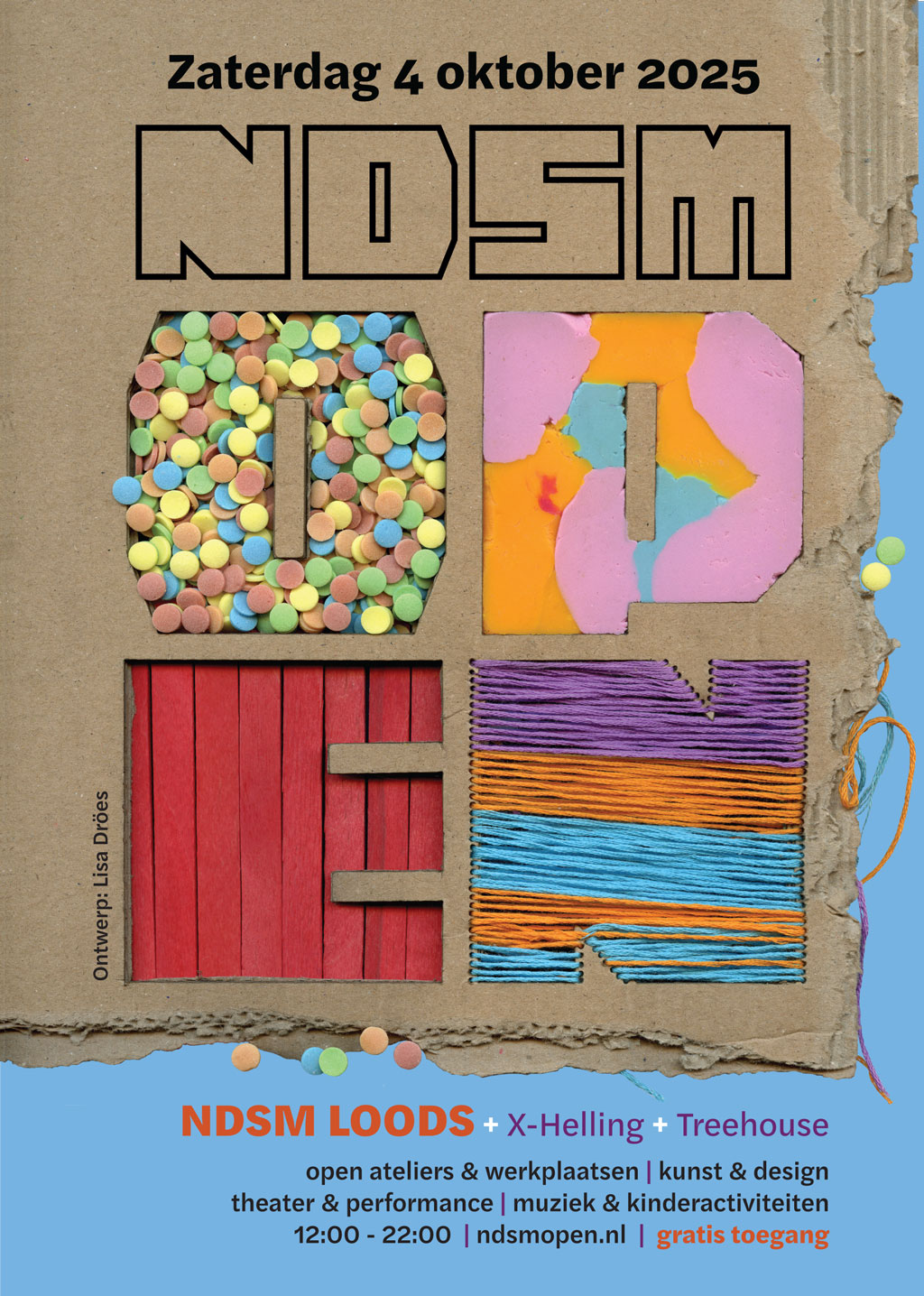 NDSM OPEN is the open day of the artists and makers community in the NDSM LOODS, an arts incubator at the NDSM on the waterfront in Amsterdam North. NDSM OPEN 2025 is Saturday October 4th, 12:00 – 22:00 in the NDSM LOODS, X-Helling & Treehouse NDSM